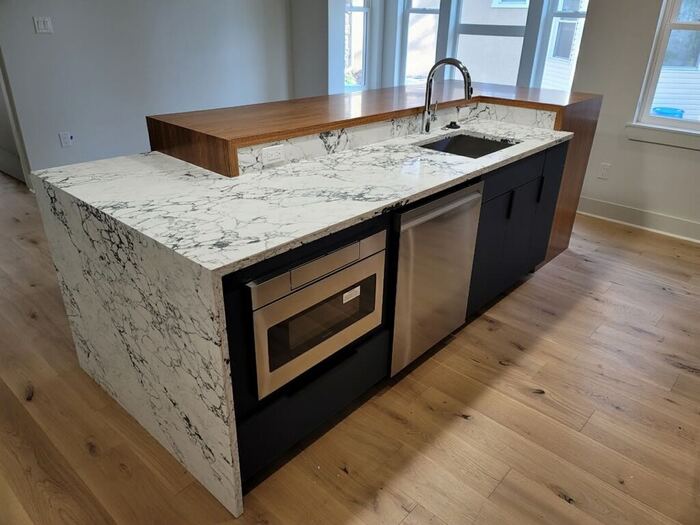 We work with a wide range of materials, finishes, and edge profiles to create custom solutions that fit your design vision and functional needs. Whether you’re dreaming of a statement island, a seamless waterfall edge, or a clean, minimalist look, our team ensures precision craftsmanship and a flawless finish from start to install.